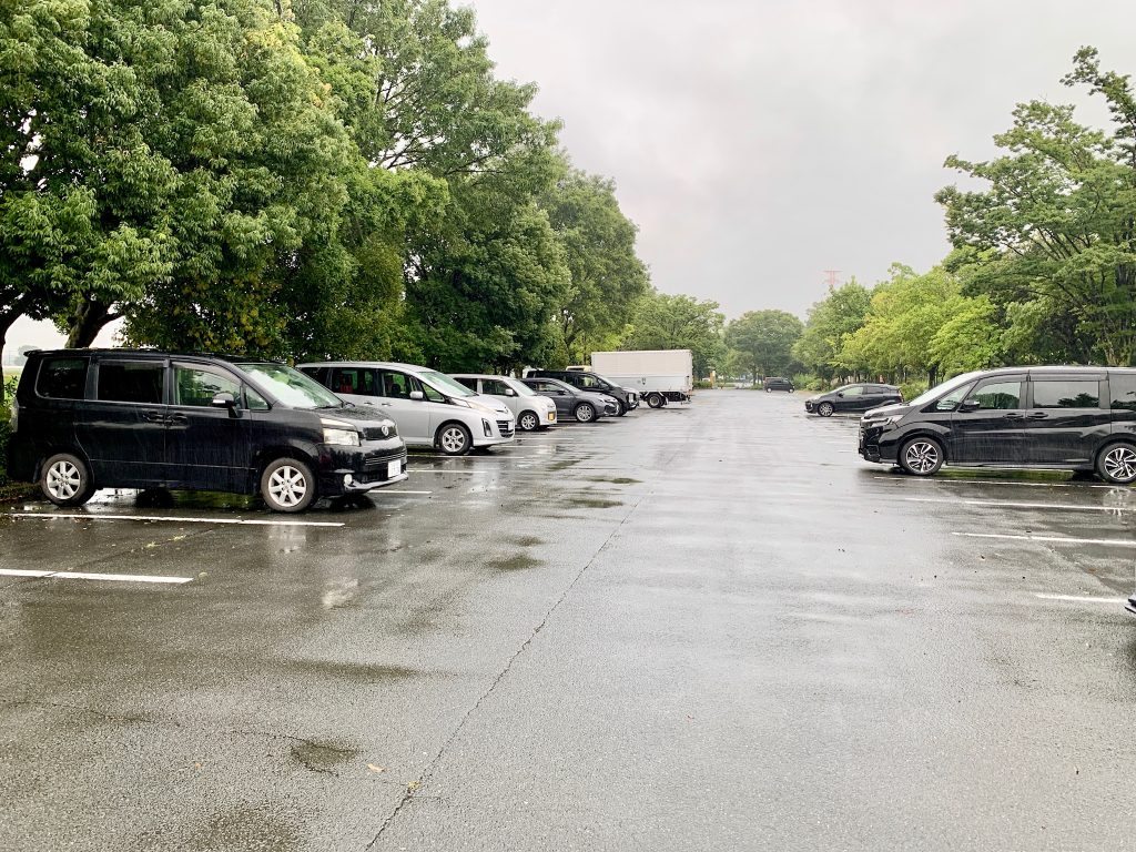 公園の駐車場に停めます🚗